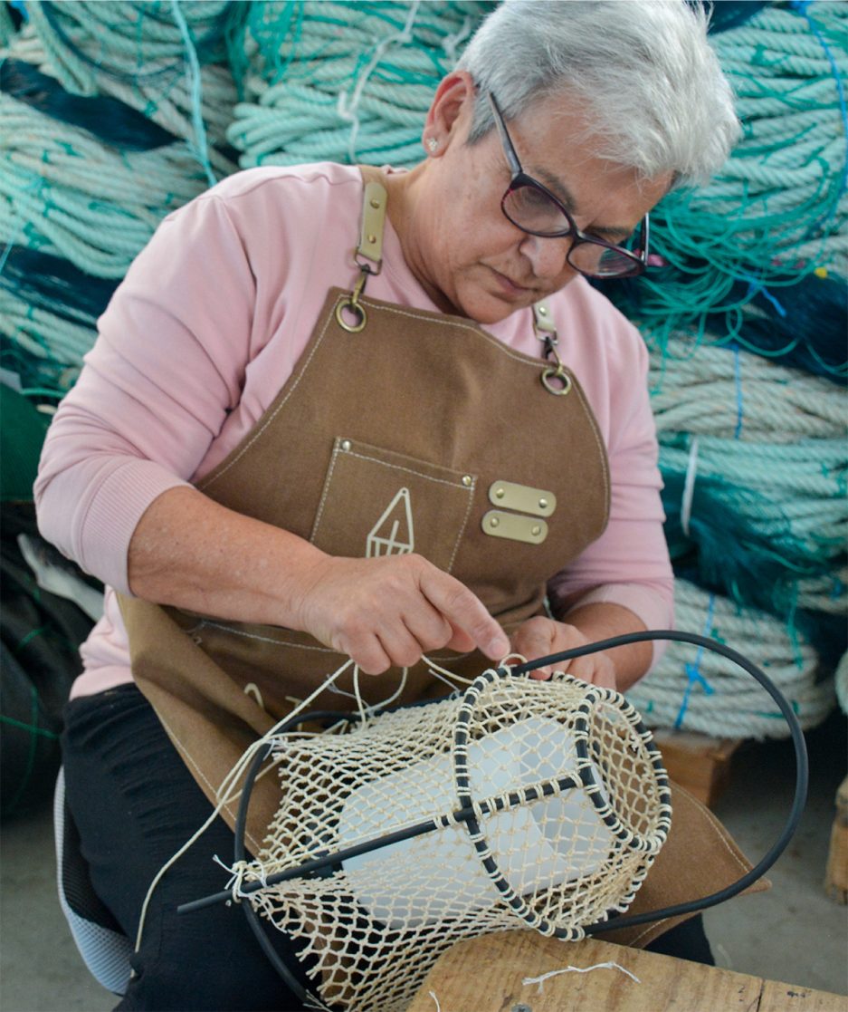 100% artisanal: handmade structure and handwoven by women netmakers of A Guarda, Pontevedra